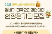 (시사미래신문) 평택시는 오는 25일 농업생태원에서 ‘2025 평택시 음식문화축제’를 통해 ▲전국 요리경연대회 ▲평택 지역 맛집 및 세계음식 시식·체험관 ▲노 오븐 베이킹 체험관 ▲탄소중립 실천·홍보관 등 다채로운 부스가 운영돼 시민들에게 풍성한 경험을 선사할 예정이다. 전국 요리경연대회는 ‘평택의 맛, 나만의 아이디어로 버거를 완성하다’를 주제로 총 18팀(일반부 10, 가족부 8)이 본선에 진출해 열띤 경연을 펼친다. 지난해와 달리 참가 부문이 일반부와 가족부로 확대됐으며, 시상 규모도 10팀 740만 원으로 늘어나 큰 기대를 모으고 있다. 경연대회의 생생한 현장을 함께할 시민 현장평가단도 사전 모집한다. 10월 24일(금) 오전 9시부터 오후 5시까지 일반부와 가족부 각 20명씩 무작위로 선착순 접수받으며, 편식 없는 고등학생 이상이라면 누구나 신청할 수 있고, 선정된 지원자는 실제 경연 현장에서 요리를 맛보고 평가하게 된다. 또한, 오전 10시에는 빵과당신 인재홍(대한민국 제과명장)이 진행하는 베이킹 체험이 마련돼 있으며, 참가 신청은 24일(금) 오전 10시부터 평택예총 공식 블로그 및 평택시청 누리집