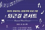 (시사미래신문) (재)인천중구문화재단(이사장 김정헌)은 오는 28일 저녁 퇴근길 시민들을 위한 특별한 문화 행사 ‘2025 영종 퇴근길 콘서트’를 개최한다. 이번 ‘영종 퇴근길 콘서트’는 구민들의 일상 속 문화예술 향유 기회를 확대하고, 다양한 장르의 문화 기획 프로그램을 통해 주민과 관광객이 함께하는 열린 문화공간을 조성하기 위한 취지로 마련됐다. 퇴근 시간대에 맞춰 진행될 이번 공연은 주민과 직장인들이 편하게 즐길 수 있는 ‘일상 속 문화예술 프로그램’으로 기획된 것이 특징이다. 먼저 오후 5시부터 5시 40분까지 인천 중구 제2청사(운남서로 100)에서 콘서트를 진행한 데 이어, 저녁 6시 30분부터 7시까지 공항철도 운서역 2번 출구 앞 광장에서 공연이 열릴 예정이다. 무료로 진행되는 이번 공연에서는 지역 예술인들이 참여하는 다채로운 음악 무대가 펼쳐진다. 이를 통해 퇴근길의 바쁜 일상에서 잠시 쉬어갈 수 있는 따뜻한 감동과 여유를 선사할 예정이다. 재단은 앞으로도 프로그램 콘텐츠 다양화와 예술인 네트워크 확대를 통해 지역 문화예술의 지속적 성장과 구민 문화 향유 증진에 힘쓸 계