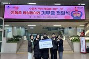 (시사미래신문) 수원 영통중학교 창업동아리 학생들이 창업 활동 수익금을 모아 수원시 취약계층 시민을 위해 기부했다. 1월 29일 수원시청 본관 1층 로비에서 열린 기부금 전달식에는 윤영숙 시민복지국장, 영통중학교 창업동아리 학생 등이 참석했다. 학생들은 직접 디자인·제작한 탁상용 달력 100개를 판매해 마련한 수익금 45만 원을 수원시에 전달했다. 수원시는 기부금을 취약계층 시민 지원을 위해 사용할 예정이다. 영통중학교 창업동아리 학생들은 “작은 나눔이지만 어려운 이웃들에게 도움이 되기를 바라는 마음으로 기부에 참여했다”며 “직접 만든 작품으로 나눔을 실천할 수 있어 기쁘다”고 소감을 밝혔다. 윤영숙 시민복지국장은 “학생들이 활동 수익금으로 이웃사랑을 실천한 모습이 대견하다”며 “따뜻한 나눔이 지역사회 전반으로 확산되기를 바란다”고 말했다.