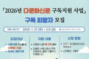(시사미래신문) 수원특례시가 다문화가족의 한국 생활 적응을 돕기 위해 ‘다문화신문 구독 지원 사업’ 대상자를 모집한다. 언어·문화적 차이로 정보 접근에 어려움을 겪는 다문화가족에게 다문화 신문 구독을 지원해 정책·생활·교육·복지 등 한국 생활에 필요한 정보를 다국어로 제공하는 사업이다. 수원시에 주소를 둔 다문화가족, 이주민 지원 유관기관 등이 신청할 수 있다. 선정된 대상자에게는 3월부터 12월까지 월 2회 다문화신문을 무료로 보급한다. 집중 신청 기간은 2월 6일까지다. 거주지 동 행정복지센터를 방문해 신청하면 된다. 2월 6일 이후에도 상시 신청할 수 있지만, 모집 인원이 초과되면 대기자로 관리한다. 수원시 관계자는 “다문화신문은 언어소통이 어려운 다문화가족에게 한국 생활에 필요한 각종 정보를 다국어로 제공하는 사업”이라며 “다문화가정의 안정적인 지역사회 정착에 실질적인 도움이 되길 바란다”고 밝혔다.