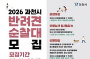 (시사미래신문) 과천시가 반려견과 함께하는 산책 활동에 방범 순찰 기능을 접목한 ‘과천시 반려견순찰대’ 신규 대원을 오는 3월 18일 오후 4시까지 공개 모집한다. ‘반려견순찰대’는 주민이 반려견과 거주지 주변 산책을 하며 범죄나 생활안전 위험 요소를 발견할 경우 즉시 112나 120으로 신고하는 주민 참여형 치안 활동이다. 순찰 시에는 견주와 반려견 모두 순찰복을 착용하며 전용 앱을 통해 순찰일지를 작성하게 된다. 선발된 반려견순찰대에게는 활동에 필요한 온라인 교육과 전문 훈련사가 동반하는 합동 교육 순찰의 기회가 제공되며, 연말에는 우수 대원에게 감사장을 수여하는 등 다양한 지원을 통해 자긍심을 높일 계획이다. 모집 대상은 동물등록된 반려견을 키우고 있는 과천 시민이며 강아지 유모차를 이용하는 보호자도 신청할 수 있다. 신청은 3월 18일까지 반려견순찰대 공식 누리집을 통해 가능하다. 선발 심사는 3월 21일 과천 중앙공원 야외음악당에서 진행된다. 전문 훈련사가 반려견의 ▲ 리드 워킹(따라 걷기) ▲ 명령어 이행(기다리기, 앉기) ▲ 외부 자극 반응(대인‧대물‧대견) 등을 종합적으로 평가해 약
