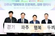 (시사미래신문) 파주시는 ㈔딜로이트한마음나눔, 행복나래㈜, 행복도시락 사회적협동조합과 함께 결식 우려가 있는 외국인 노동자 자녀 지원을 위한 ‘행복두끼 프로젝트’업무협약을 체결했다고 밝혔다. 이날 협약식에는 최병갑 파주시 부시장을 비롯해 ㈔딜로이트한마음나눔 유병문 상임이사, 행복나래㈜ 조민영 본부장, 행복도시락 사회적협동조합 최준 사무국장 등 관계자들이 참석해, 아동복지 향상을 위한 상호 협력체계를 구축하기로 뜻을 모았다. 이번 협약을 통해 파주시는 결식 우려 아동을 추천하고, ㈔딜로이트한마음나눔, 행복나래㈜와 행복도시락 사회적협동조합은 해당 아동을 대상으로 도시락을 후원·제작·배송하는 역할을 맡게 된다. 이번 협약을 계기로 파주시 내 결식이 우려되는 외국인 노동자 자녀 40명이 지원을 받게 됐으며, ‘아프리카 10개국 이주민 노동자 공동체’는 해당 아동들이 정기적으로 도시락을 제공받게 된 것에 대해 깊은 감사의 마음을 전했다. 최병갑 파주시 부시장은 “파주시가 행복두끼 프로젝트 사업에 참여하게 되어 뜻깊다”라며 “앞으로도 지역사회 내 어려움을 겪는 아동들에게 희망을 전하는 따뜻한 사업이 지속적으로