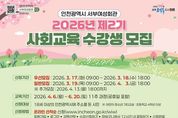 (시사미래신문) 인천광역시서부여성회관은 3월 17일부터 우선모집을 시작으로 ‘2026년 제2기 사회교육’ 수강생을 모집한다고 밝혔다. 이번 교육은 4월 6일부터 6월 20일까지 11주간 운영되며, 총 8개 분야 74개 강좌로 자격 취득과 취업·창업 준비, 디지털 역량 강화, 문화·건강 프로그램 등 시민들의 다양한 학습 수요를 반영해 폭넓게 마련됐다. 모집 기간은 우선모집 3월 17일부터 3월 18일까지, 일반모집 3월 19일부터 4월 3일까지, 추가모집 4월 3일부터 4월 13일까지로 구분해 진행된다. 주요 과정에는 △자격증 취득(공인중개사, 도배기능사 등) △취업 및 창업(바리스타, 헤어커트 등) △IT전문(컴퓨터 활용능력, 전산회계 등), △어학(영어, 중국어, 등) △문화아카데미(수채화, 기타 등) △웰빙건강(요가, 댄스 등) △주말 및 특강(주말요리, 기타교실 등) 다채로운 프로그램이 마련됐다. 신청 대상은 인천시에 거주하는 18세 이상 시민이며, 모든 접수는 온라인을 통해 선착순으로 진행된다. 다만‘어린이·청소년 기타교실’은 초등학교 3학년부터 고등학교 3학년까지 신청할 수 있다. &nb