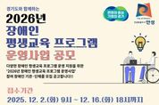(시사미래신문) 안성시는 성인 장애인의 평생학습 권리를 보장하고 평생교육 참여 기회를 확대하기 위하여 경기도와 안성시가 함께 지원하는 '2026년 장애인 평생교육 프로그램 운영' 공모사업을 추진한다. 이번 공모사업은 성인 장애인을 위한 맞춤형 평생교육 프로그램을 발굴‧지원하여 사회참여 기회를 넓히고, 누구나 차별 없이 배움의 기회를 누릴 수 있는 평생학습 환경을 조성하는 데 목적이 있다. 신청 대상은 안성시에 주소(등록)를 둔 장애인 평생교육 기관‧단체이며, 신청 기간은 12월 2일부터 16일까지이다. 모집 규모는 ▲평생교육법 제7진 분류를 기반으로 한 ‘장애인 평생교육 프로그램’ 1개소와 ▲'장애인복지법'에 따른 15개 장애 유형 분류를 기반으로 한 ‘장애유형별 평생교육 프로그램’ 2개소, 총 3개소이다. 선정된 프로그램은 2026년 2월부터 10월까지 운영될 예정이다. 공모사업에 대한 자세한 내용은 안성시청 누리집 및 안성배움e 누리집에 게시된 공고문을 통해 확인할 수 있으며, 신청 서류 또한 해당 누리집에서 내려받을 수 있다. 시 관계자는 “이번 사업을 통해 성인 장애인의 평생학습 접근성을 높
