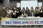 (시사미래신문) 수원시 영통구는 지난 2일, 영흥수목원에서 민원담당 공무원을 대상으로 '나를 찾아 떠나는 마음치유 여행 Cheer up! 힐링 프로그램'을 운영했다고 밝혔다. 이번 프로그램은 ‘향기로운 자기 돌봄’을 주제로, 수원시 마음돌봄상담실 김현수 전문심리상담사의 지도 아래 ▲감정 코칭(감정 이해) ▲심신이완(복식호흡·바디스캔) ▲아로마테라피(나만의 아로마오일 향수 만들기, 향기명상) 등 실습 중심 활동으로 진행됐다. 이를 통해 참여자들은 마음을 가라앉히고 집중력을 높이는 시간을 가졌다. 실습 후에는 대한민국 최고의 정원문화 명소인 영흥수목원을 산책하며 자연 속에서 힐링하고, 동료들과 소통하며 웃음을 나누는 시간을 가졌다. 교육에 참여한 한 공무원은 “감정 아로마 오일 체험으로 마음을 다스릴 수 있었고, 민원 업무로 지친 일상 속에서 나 자신을 돌볼 수 있었던 소중한 시간이었다”고 소감을 밝혔다. 장수석 영통구청장은 “공직자들이 스트레스를 해소하고 활력을 되찾는 시간이 됐길 바라며, 앞으로도 최고의 행정서비스 제공을 위해 공직자 역량 강화를 지속적으로 지원하겠다”고 말했다. 영통구