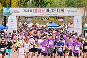 (시사미래신문) 대전 대덕구는 19일 금강로하스 대청공원 일원에서 열린 ‘제24회 대청호마라톤대회’가 5000여 명이 참여한 가운데 성황리에 막을 내렸다고 밝혔다. 하프(21.0975km)·미니(10km)·건강(5km) 등 3개 부문으로 치러진 이번 대회에는 하프 1047명, 미니 1631명, 건강코스 1208명 등 총 3886명이 출전했으며, 운영 요원과 자원봉사자, 응원 시민들이 함께 어우러져 지역 대표 건강 축제의 면모를 보여줬다. 눈길을 끈 장면도 적지 않았다. 대덕구 홍보대사인 조웅래 ㈜선양소주 회장이 하프 코스에 직접 나서 완주하며 현장의 열기를 끌어올렸다. 지난 9월 홍보대사로 위촉된 조 회장은 이번 완주로 역할을 몸소 보여줬다는 평가다. 또한, 대덕구 드림스타트 아동과 가족들도 건강 코스에 나란히 참여했다. 대덕구 드림스타트 가족들은 ‘건강 증진’과 ‘가족 유대 강화’라는 대회 취지에 동참해 가을빛 대청호를 배경으로 ‘함께 달리는 가족의 날’을 만들었다. 안전·편의 중심의 운영도 호평을 받았다. 대회 조직위는 전 구간에 구급차를 배치하고 급수대를 촘촘히 운영해 탈수와 부상 예방에 만전