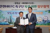 (시사미래신문) 충북 진천군은 군청 소회의실에서 HR레포츠 주식회사(대표 신호룡)와 ‘진천 HR FC 축구단 육성 및 지원을 위한 업무협약’을 체결했다고 24일 밝혔다. 이번 협약은 2026년 대한축구협회 K4 리그 참가를 앞두고, 진천 HR FC의 안정적인 운영 기반을 마련하고, 지역 스포츠 발전을 위한 협력 체계를 구축하기 위해 추진됐다. 협약식에는 송기섭 진천군수와 HR레포츠(주) 신호룡 대표, 김화영 진천군 체육회장, 김중기 진천군 축구협회장 등 관계자들이 참석했다. 협약의 주요 내용은 △축구단 운영과 발전 지원 △유소년 축구 육성과 저변 확대 △지역사회 공헌 활동 △스포츠마케팅을 통한 지역 홍보 강화 등이다. 군은 이번 협약을 통해 지역 스포츠 브랜드 가치 제고, 군민 스포츠 관람 문화 정착, 유소년·생활 체육 연계 강화 등 다양한 효과를 기대하고 있다. 앞으로 군은 행정적·재정적 지원과 경기장 관련 시설 활용 지원 등에 협력하고, HR 레포츠는 선수단 운영, 스포츠마케팅, 유소년 프로그램 운영 등을 총괄하며 지역 축구 문화 확산에 힘쓸 예정이다. 송기섭 군수는