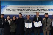 (시사미래신문) 수원시청소년청년재단은 11일 성균관대학교 자연과학캠퍼스와 청소년ㆍ청년의 취‧창업 지원과 전인적 성장을 위한 업무협약(MOU)을 체결했다고 밝혔다. 이번 협약을 통해 양 기관은 △대학생 연계사업 활성화를 위한 지속적인 교류활동 추진 및 내실화 △청소년의 진로 탐색을 위한 멘토링 및 학과 탐방 기회 제공 △기타 상호 협력이 필요하다고 인정되는 분야에서의 협조 체계를 구축할 예정이다. 재단 관계자는 "이번 협약이 단순한 형식적 절차에 머무르지 않고 우리 청소년‧청년들에게 새로운 경험과 지속적인 성장의 기회를 제공하는 중요한 출발점이 되기를 희망한다"며, "협약의 성공적인 이행을 위해 상호 긴밀하게 협력해 나갈 것"이라고 밝혔다.