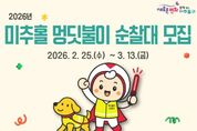(시사미래신문) 미추홀구종합자원봉사센터는 3월 13일까지 ‘2026년 미추홀구 멍딧불이 순찰대’로 활동할 반려 가족을 모집한다고 밝혔다. 반려견 순찰대는 반려견과 함께 산책하며 지역 내 위험 요소를 발견하고 관계 기관에 신고하는 등 생활 속 안전 지킴이로, 올바른 반려문화 확산과 지역 안전망을 구축할 계획이다. 이번 모집을 통해 총 30가정(60명 이내)을 선발하며, 미추홀구에 거주하고 정기적인 순찰 활동이 가능한 반려견 가족이면 신청할 수 있다. 선발된 반려견과 반려인은 발대식 이후 정식 순찰대로 활동하게 되며, 주 1회 이상 순찰을 진행하고, 연 1회 반려견 문화축제 ‘미추홀 댕댕 페스타’를 통해 반려인 간의 교류를 활성화하고, 성숙한 반려문화를 조성해 나갈 계획이다. 센터 관계자는 “멍딧불이 순찰대는 반려견과 함께하는 일상 속 산책이 곧 지역을 지키는 자원봉사 활동으로 이어지는 의미 있는 사업”이라며 “많은 반려 가족이 참여해 안전하고 따뜻한 미추홀구를 함께 만들어가길 바란다.”고 전했다. 자세한 사항은 미추홀구종합자원봉사센터 홈페이지에서 확인할 수 있다.