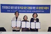 (시사미래신문) 인천광역시교육청은 12일 인천시청, 사단법인 청소년인권복지센터 내일과 함께 인천청담고등학교의 법인 이전 및 학교 이전 지원을 위한 3자 합의를 체결했다. 이번 합의에는 인천청담고등학교의 법인을 현 법인인 청소년인권복지센터 내일에서 가톨릭아동청소년재단으로 이전하고, 이전을 2026년 2월 28일까지 완료한다는 내용이 담겼다. 또한 인천시청은 이전에 필요한 행정절차를 지원하고, 인천시교육청은 2026학년도 학사 운영이 안정적으로 이루어지도록 교육·행정 지원을 추진하기로 했다. 도성훈 교육감은 “이번 합의는 학생들의 학습권 보호와 학교 운영의 안정성을 고려해 기관 간 역할을 명확히 한 것”이라며 “학교 이전과 법인 변경이 원활히 진행될 수 있도록 지원하겠다”고 말했다.