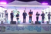 (시사미래신문) 고양특례시는 지난 11일 저녁 6시, 일산호수공원 한울광장에서‘2025년 고양특례시민의 날 기념식’을 성황리에 개최했다고 밝혔다. 이번 기념식은 이동환 고양특례시장을 비롯해 시의회 의장, 국회의원, 도·시의원 등 주요 인사와 더불어 고양시민들의 참석으로 성대하게 열렸다. 시는 시민들과 함께 그동안의 시정 성과를 공유하고 미래 비전을 다짐하며 고양시민의 긍지와 애향심을 고취시키는 뜻깊은 시간을 가졌다. 특히, 행사 당일 비가 오는 궂은 날씨에도 불구하고 많은 시민들이 참석해 뜨거운 호응을 보였다. 식전행사로 고양예술고등학교 무용부와 고양시립합창단이 아름다운 공연을 펼쳐 분위기를 고조시켰다. 본 행사에서는 다양한 분야의 시민 대표들이 시민헌장을 낭독하며 화합의 메시지를 전달했으며, 뒤이어 이동환 시장이 기념사를 전했다. 이어 진행된 모범 시민상 시상식에서는 지역 발전에 기여한 시민들에게 상장을 수여했다. 특히, 화려한 퍼포먼스와 함께‘G-노믹스 5개년 계획’을 알린 LED 트론댄스와 가을 밤하늘을 수놓은 불꽃쇼는 시민들에게 깊은 인상을 남겼다. 인기