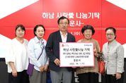 (시사미래신문) 지난 3일, 청정하남시니어협회(청시회)는 성금 100만원을 하남시에 전달하고 기탁식을 가졌다. 이날 기탁식에는 이현재 하남시장을 비롯해 박규섭 회장 등 관계자들이 참석하여 자리를 빛냈다. 박규섭 회장은 “추석 명절을 맞아 소외된 이웃들에게 정을 나누고, 조금이나마 도움이 되길 바라며 경제적으로 어려운 시기를 잘 극복해 나갔으면 한다”고 말했다. 이현재 하남시장은“ 따뜻한 마음을 나눠주시는 청정하남시니어협회에 깊이 감사드리며 기탁해 주신 성금은 관내 어려운 이웃에게 소중히 전달하겠다”고 전했다. 이날 기탁된 성금은 관내 취약계층에게 배부될 예정이다.