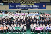 (시사미래신문) 광주광역시체육회(회장 전갑수)가 26일 오후 2시 빛고을체육관에서 ‘제106회 전국체육대회 광주선수단 결단식’을 열어 대회 필승을 위한 각오를 다졌다고 밝혔다. 이날 행사에는 전갑수 체육회장, 김영문 광주시 문화경제부시장, 서용규 광주시의회 부의장, 이정선 광주시교육감을 비롯한 종목단체 회장, 임원, 육성학교장 등 관계자 400여 명이 참석해 광주시 대표선수단의 선전을 기원하며 격려했다. 행사는 사전공연, 전국체전 참가계획 보고, 대표선수 훈련영상 시청, 선수단기 수여, 선수대표 선서, 응원 메시지 및 격려금 전달 등의 순으로 진행됐다. 이날 선수 선서에는 육상 이재성(광주시청)과 양궁 오예진(광주여대 4년)이 함께 나서 선수단을 대표해 필승 결의를 다졌다. 광주선수단은 이번 부산 전국체전에서 육상 남자 400m 계주(광주시청) 5연패에 도전한다. 또 지난해 제105회 체전에서 대회 4관왕에 오른 육상 고승환과 한국 근대5종 간판 전웅태(이상 광주시청)가 국가대표로서의 기량을 선보인다. 역도 국가대표 손현호(광주시청)와 여고부 농구 강호 수피아여고 등도 출전해 시‧도 종합득점 30,000점 이상