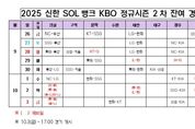 (시사미래신문) KBO는 26일(금) 2025 신한 SOL뱅크 KBO 정규시즌 2차 잔여 경기 일정을 확정했다. 편성된 경기는 1차 잔여 경기 일정에서 우천 취소된 후 편성되지 않았던 7경기이며, 10월 3일(금)까지 편성됐다. 경기가 우천 등으로 취소될 경우 발표된 일정의 예비일로 우선 편성되며, 다음 날 동일 대진일 경우 더블헤더로 편성된다. 예비일이 없을 경우 추후 편성된다. 경기 개시시간은 평일 18시 30분, 토요일 17시, 일요일 14시이다. 또한 10월 3일(금) 경기는 해당 구단의 전날 경기 후 이동을 고려하여 17시에 편성한다. 한편, 우천 등으로 연기되는 경기가 포스트시즌 참가팀 이외의 팀간 경기이거나 포스트시즌 진출팀이라도 해당 시리즈와 관계없는 대진일 경우에는 정규시즌 최종일과 와일드카드 결정전 개막일 사이의 이동일 또는 포스트시즌 기간 중에도 경기를 거행할 수 있으며 와일드카드 결정전 진출 구단의 정규시즌 마지막 경기와 와일드카드 결정전 개최일 사이 최소 하루의 이동일을 둘 예정이다. 또한, 정규시즌 제1,5위 구단이 두 팀일 경우에는 KBO 리그 규정에 의거 와일드카드 결정
