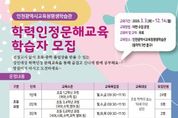 (시사미래신문) 인천광역시교육청평생학습관은 2월 10일부터 13일까지 ‘2026년 초등·중학 학력인정 문해교육’ 학습자를 모집한다 ‘학력인정 문해교육’은 비문해 및 저학력 성인을 대상으로 초·중학교 학력 취득 기회를 제공하기 위해 마련됐으며, 초등 및 중학 과정을 각 1~3단계로 세분화하여 3월 3일부터 12월 14일까지 운영한다. 평생학습관 관계자는 “이번 교육을 통해 학습자들이 배움의 즐거움을 되찾고, 학력 취득을 통해 자존감을 높일 수 있기를 기대한다”고 말했다. 모집에 대한 자세한 사항은 평생학습관 기획정보부로 문의하면 된다.