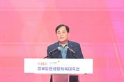 (시사미래신문) 9월 19일, 김천시에서 경북 생활체육 동호인들의 우정과 화합을 다지는 '제35회 경북도민생활체육대축전'의 성대한 막이 올랐다. 이번 대회는 경상북도·경상북도체육회 주최, 김천시·김천시체육회 주관으로 22개 시·군, 23개 종목에서 1만여 명의 선수단 및 임원 그리고 관람객 등이 참가하며 김천실내체육관 및 각 종목별 경기장에서 3일간 열린다. 이날 개회식에서는 인기 트로트 가수 별사랑과 설하윤의 흥겨운 식전 공연으로 화려하게 막을 올렸고 뒤이어 개회 선언과 선수단 입장, 주요 내빈의 축사 등 의식행사가 진행됐다. 이후 펼쳐진 주제공연은 세 가지 장으로 구성됐다. 1막에서는 김천과 경북의 미래를 담아낸 아나모픽 영상이 초대형 LED 전광판을 통해 3D 입체감을 뽐내며 무대를 압도했고, 2막에서는 김천과 경북이 하나 되는 대회의 의미를 표현한 희망의 하모니 쇼콰이어 퍼포먼스가 이어졌다. 마지막 장에서는 LED 성화응원봉을 활용한 성화 연출 퍼포먼스가 펼쳐져 장내 분위기를 뜨겁게 달구었다. 곧바로 이어진 식후 행사에서는 인기 트로트 가수 김희재의 축하공연이 펼쳐지며 개회식의 성대한 막을
