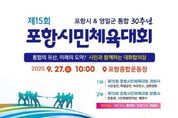 (시사미래신문) 포항시는 오는 27일 포항종합운동장에서 ‘제15회 포항시민체육대회’를 개최한다. 격년제로 열리는 포항시민체육대회는 세대와 지역을 아우르는 대표적인 시민 화합 행사로 자리매김해왔다. 올해는 포항시-영일군 통합 30주년을 맞아 더욱 뜻깊은 무대가 마련된다. 이번 대회에는 29개 읍면동 선수단과 일반 시민 등 1만여 명이 참여한다. 특히 통합 30주년을 시민과 함께 기념하기 위해 관중석 중앙에 특설무대를 설치하고 성화 점화식을 진행, 시민 모두가 하나 되는 감동의 순간을 연출할 계획이다. 개회식 직후에는 국민가수 홍진영의 축하공연이 이어져 열정적인 무대로 현장을 뜨겁게 달굴 예정이다. 시민체육대회 하이라이트인 운동회 프로그램은 경쟁 위주의 종목을 줄이고, 줄다리기·윷놀이·줄넘기 등 남녀노소 누구나 즐길 수 있는 생활형 종목 중심으로 구성된다. 참여자 모두가 웃으며 어울리는 참여형 체육 축제로 진행된다. 또한 29개 읍면동 예선을 거쳐 선발된 10개 팀이 무대에 오르는 ‘시민화합한마당’ 공연도 준비돼 있어, 각 읍면동 대표들이 끼와 열정을 뽐내는 무대를 선보인다.