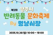 (시사미래신문) ㈜빅프렌즈가 주관하는 ‘2025년 양주시 반려동물 문화축제’가 오는 26일 옥정동 선돌근린공원에서 열린다. 이번 축제는 반려동물 보호자와 시민이 함께 즐기고 배우며, 반려동물 관련 산업과 단체가 교류하는 ‘반려동물 친화도시 양주’ 실현의 장으로 마련됐다. 특히 지난해보다 참여 기관과 단체가 대폭 확대돼 더욱 풍성한 프로그램이 준비됐다. 축제는 오전 10시부터 오후 6시까지 진행되며 ▲반려동물 체험부스 ▲관련 기업 홍보관 ▲시민 참여형 이벤트(이색 장기자랑, 강아지 모델 선발대회 등) ▲푸드트럭 ▲럭키드로우 추첨 등 다채로운 프로그램이 운영된다. 시 관계자는 “이번 축제를 통해 반려동물과 시민이 함께하는 건전한 문화가 확산되길 기대한다”며 “많은 시민들의 관심과 참여를 부탁드린다”고 말했다.