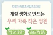 (시사미래신문) 인천광역시교육청연수도서관은 오는 10월 25일 오후 2시 평생학습1실에서 가족 이용자를 위한 ‘10월 가족 토요체험 프로그램’을 운영한다. 이번 프로그램은 ‘우리 가족 마음 정원’을 주제로 가을의 정취를 담은 그림책을 함께 읽으며 가족의 마음을 돌아보고 함께 소통하는 시간을 갖는다. 이어지는 원예 활동에서는 계절 생화를 활용해 가족의 작은 정원을 만들며 자연과 감성을 나눌 예정이다. 참여 신청은 10월 13일부터 연수도서관 누리집에서 선착순 접수하며, 자세한 내용은 연수도서관 독서문화과 로 문의하면 된다.