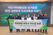 (시사미래신문) 파주시는 2월 25일 여의도 국회 국회의원회관에서 열린 ‘2026 대한민국 녹색기후상’ 시상식에서 자치부문 우수상을 수상했다. 대한민국 녹색기후상은 국회기후변화포럼이 주관하는 국내 대표 기후·에너지 분야 종합 시상으로, 기후변화 대응과 에너지 전환 실현에 기여한 지방정부, 공공기관, 기업, 시민단체 및 개인을 선정해 시상한다. 국회기후변화포럼에 따르면 2025년 12월 29일부터 2026년 1월 30일까지 총 7개 부문에 걸쳐 공모를 진행했으며, 자치부문에는 31개 지방정부가 응모했다. 예심과 본심을 거친 심사 결과, 파주시가 최종 수상기관으로 선정됐다. 이번 수상은 ▲국공유지를 활용한 공공 재생에너지 직접 전력구매계약(PPA) ▲분산에너지 특화지역 추진 ▲시민·소상공인·어린이를 대상으로 한 알이100(RE100) 교육 및 자문·상담 ▲전국 최초 알이100(RE100) 전담조직 및 조례 제정 등 ‘파주형 알이100(RE100)’ 정책이 종합적으로 인정받은 결과다. 파주시 관계자는 “이번 수상은 공공 재생에너지 직접 전력구매계약(PPA)과 기업 알이100(RE100) 대응 지원을 통해