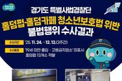 (시사미래신문) 경기도가 청소년 출입이 금지된 홀덤펍, 홀덤카페 108개를 대상으로 불법행위를 집중 수사한 결과 ‘청소년보호법’ 위반 사업장 13개소를 적발했다. 홀덤펍은 술을 마시면서 포커 등 카드게임을 즐길 수 있는 주점을 말한다. 이번 수사는 대학수학능력시험 이후 청소년에 대한 사행심 조장을 막고 유해환경으로부터 보호하기 위해 이뤄졌다. 적발된 사항은 19세미만 청소년 출입·고용금지 미표시 13건이다. 홀덤펍, 홀덤카페는 ‘청소년보호법’에 따라 청소년 출입·고용이 금지된 업소이기 때문에 업소의 출입구 중 가장 잘보이는 곳에 ‘19세미만 출입·고용금지업소’임을 표시해야 한다. 적발된 업소는 모두 출입구에 청소년 출입·고용금지업소 표시를 부착하지 않고 영업하다 이번 수사에 적발됐다. ‘청소년보호법’에 따라 청소년의 출입·고용을 제한하는 내용을 표시하지 않은 경우 최대 2년 이하의 징역 또는 2천만 원 이하의 벌금이 부과된다. 도는 적발된 업소에 대해 수사가 완료되는 즉시 검찰에 송치하고, 관계기관이 행정조치 할 수 있도록 수사결과를 통보할 예정이다. 기이도 경