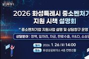 (시사미래신문) 화성특례시가 관내 중소기업과 소상공인의 경영 애로 해소와 지원사업 활용도를 높이기 위해 오는 26일 화성상공회의소 컨벤션홀에서 ‘2026년 화성특례시 중소벤처기업 지원 시책 설명회’를 개최한다. 이번 설명회는 화성특례시를 비롯해 경기지방중소벤처기업청, 중소벤처기업진흥공단 등 13개 유관기관이 추진하는 ‘2026년 기업지원 사업’에 대한 종합적인 정보를 제공하기 위해 마련됐다. 설명회는 오후 2시부터 4시 30분까지 진행된다. 사전 신청도 가능하며, 별도 사전 신청 없이 기업인 및 소상공인 누구나 당일 현장 방문으로도 참여할 수 있다. 지원사업 발표는 ▲정책 분야(화성시, 화성산업진흥원) ▲일자리 분야(경기도일자리재단) ▲자금 분야(중소벤처기업진흥공단, 기술보증기금, 신용보증기금, 경기신용보증재단) ▲판로·수출분야(경기지방중소벤처기업청, 경기도경제과학진흥원, 경기지역FTA통상진흥센터) ▲R&D 분야(경기지방중소벤처기업청, 경기테크노파크) ▲소상공인 분야(소상공인시장진흥공단) 순으로 진행된다. 또한, 전 참여기관이 설명회장 외부에 별도로 마련된 상담창구에서 1:1 상담을 진행해, 각 기