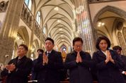 (시사미래신문) 이재명 대통령과 김혜경 여사가 25일 서울 중구 명동대성당에서 열린 성탄 대축일 미사에서 기도를 하고 있다.